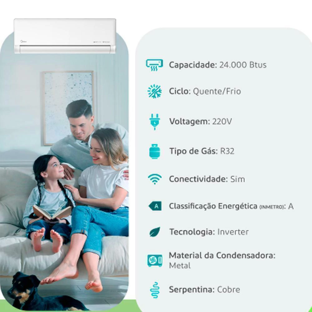 O Ar-Condicionado Split Hi Wall Inverter Midea AI Ecomaster 24.000 BTUs Quente/Frio foi desenvolvido para proporcionar climatização personalizada, conectividade avançada e eficiência energética de ponta. Com a tecnologia exclusiva AI Ecomaster, o aparelho aprende seus hábitos, interpreta o ambiente e ajusta automaticamente o funcionamento, oferecendo até 30% de economia de energia.